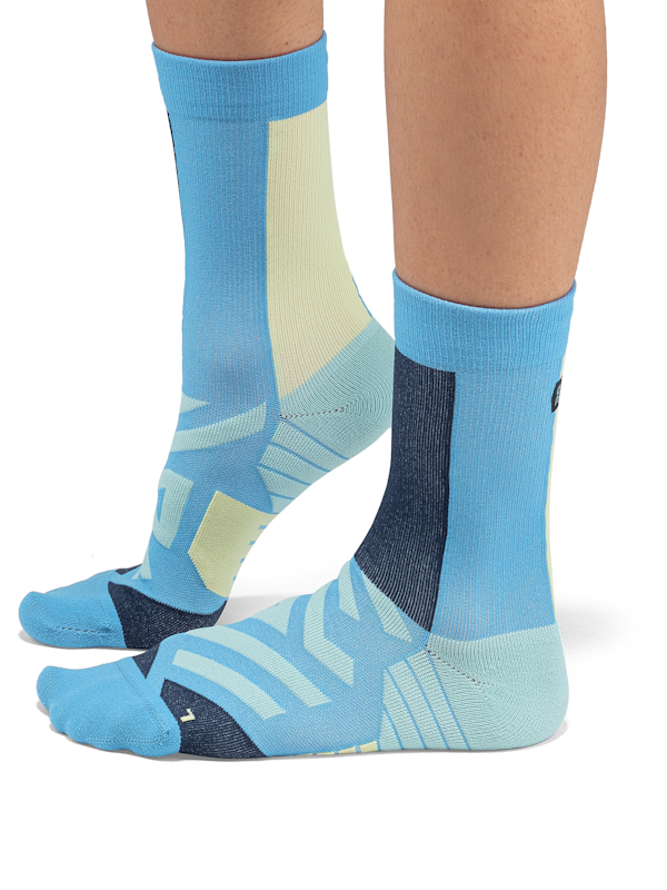 The pattern at the arch triggers sensory receptors to prime your feet for the run while Swiss engineering keeps the sock firmly in place for performance standards that don't slip.