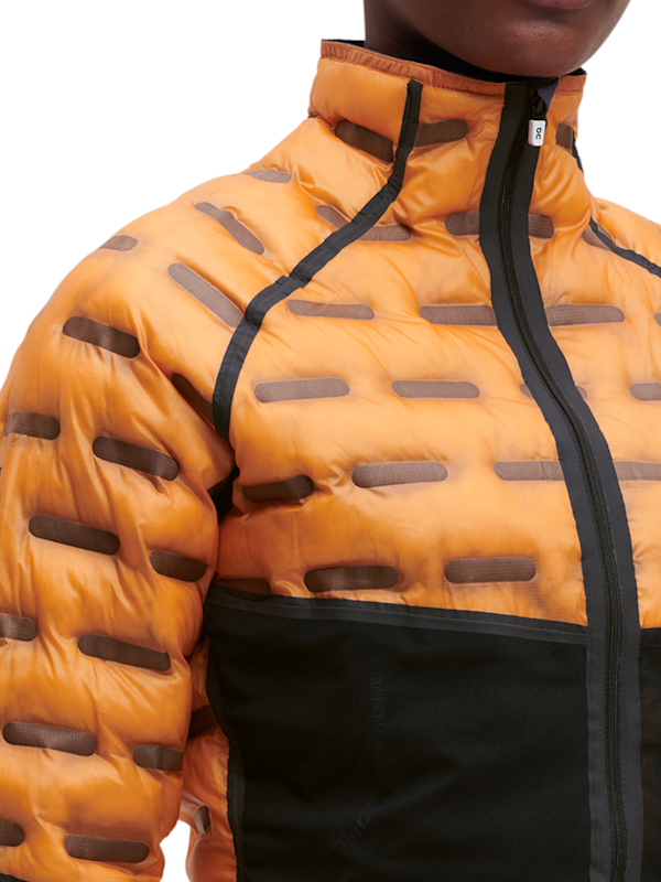 While the down-like (but featherless) quilting insulates you in colder conditions, the jacket is also surprisingly light. And it packs down into itself, so you can always carry it with you. The high quality rip-stop and plain weave materials offer a cozy, premium feel – and impressive durability.